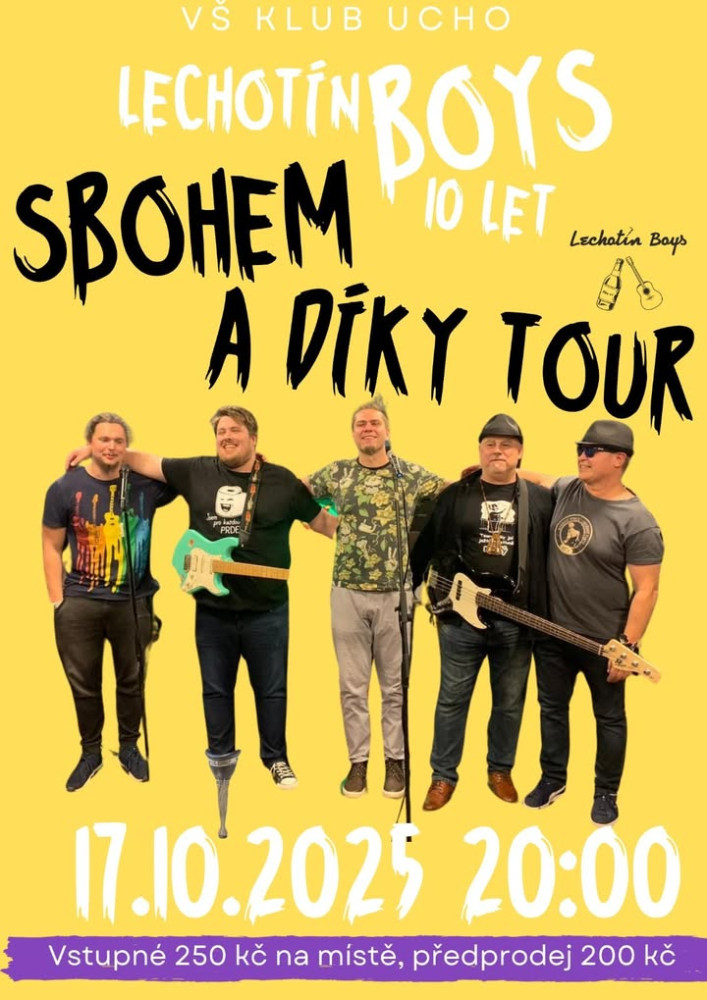 Před 10 lety, 15.10. 2015 měli Lechotíni první oficiální koncert na Bolevecké koleji, ve VŠ klubu Ucho. To výročí si chtějí náležitě užít, oslavit a také naposledy zahrát. Skončí to tam, kde to všechno začalo!