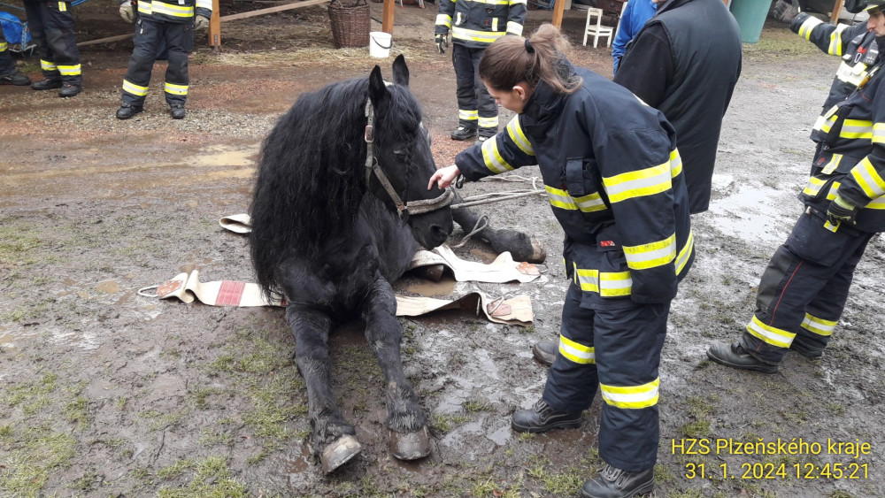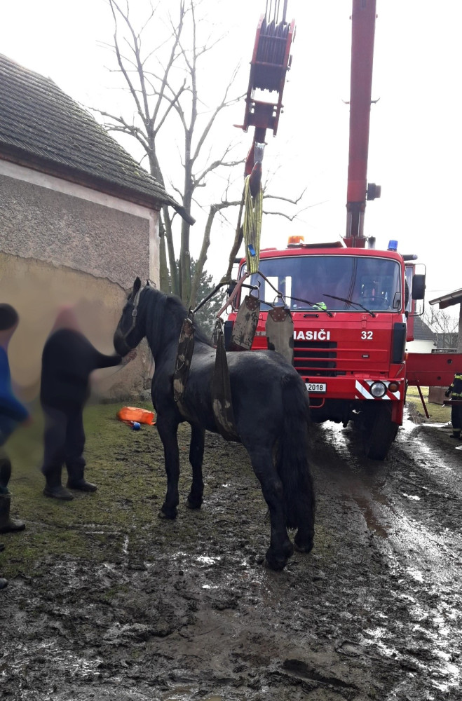 FOTOGALERIE: Hasiči pomáhali koni na nohy