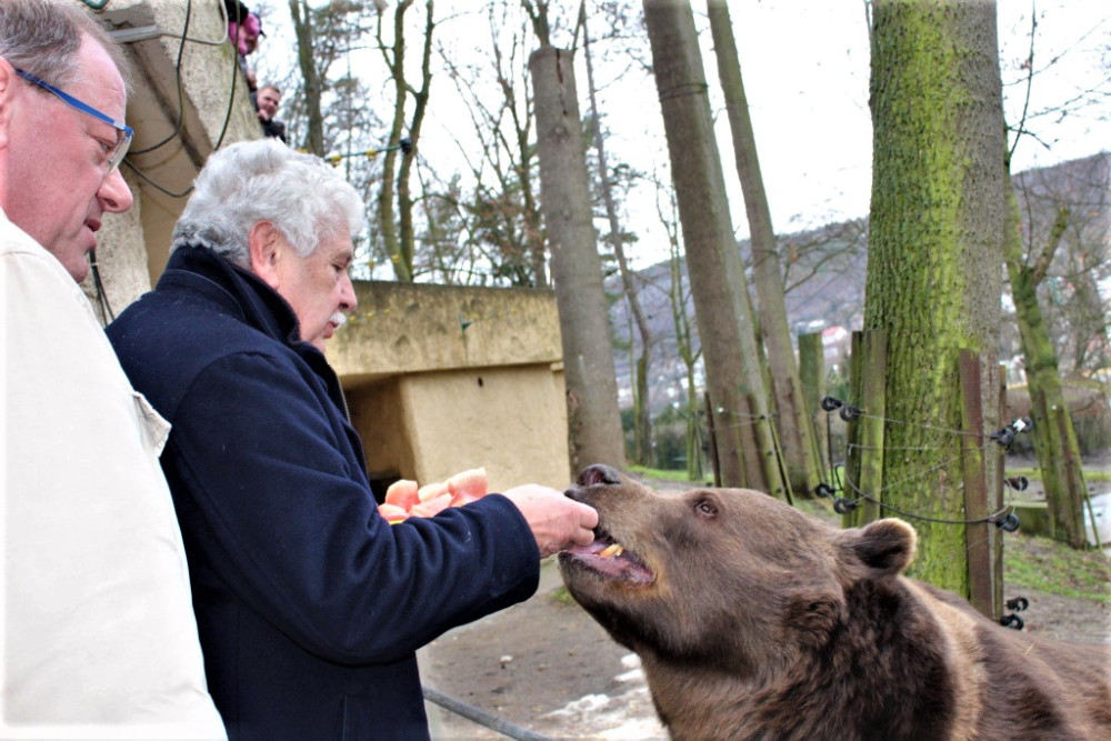 Václav Chaloupek na oslavě narozenin medvědů v berounském medvědáriu
