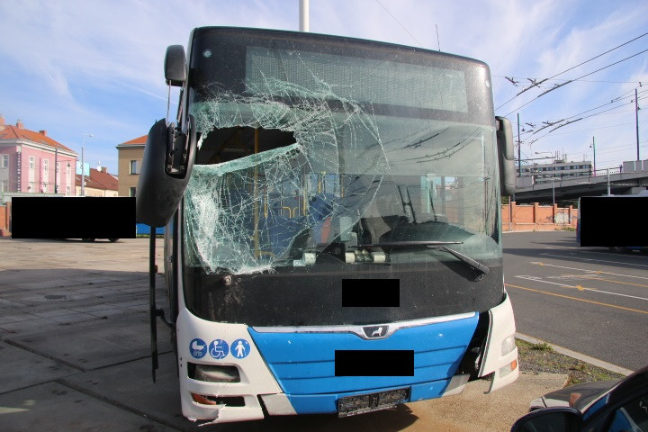 Autobus prorazil zeď a málem skončil v kolejišti, řidič zapomněl na ruční brzdu