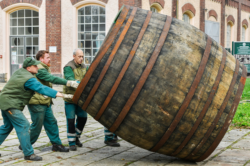 Zruční bednáři z Plzeňského Prazdroje smolili 14 obřích ležáckých sudů tradiční metodou