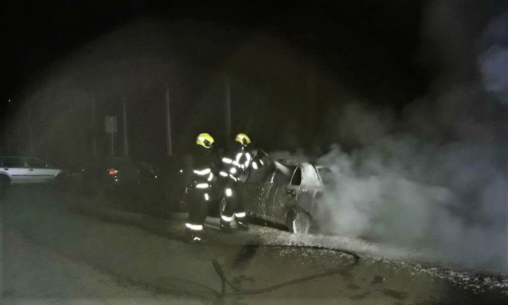 Hasiči zasahují u požáru automobilu a protihlukové stěny