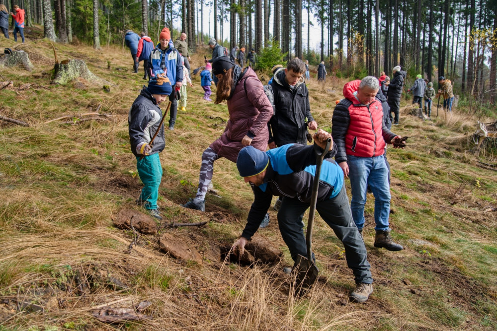 Dobrovolníci vysadili v lese poblíž šumavského Pancíře stovky nových sazenic buku