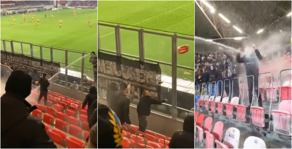 VIDEO: Sparťanští fanoušci bránili hasičům likvidovat hořící pyrotechniku, házeli po nich i kusy sedaček