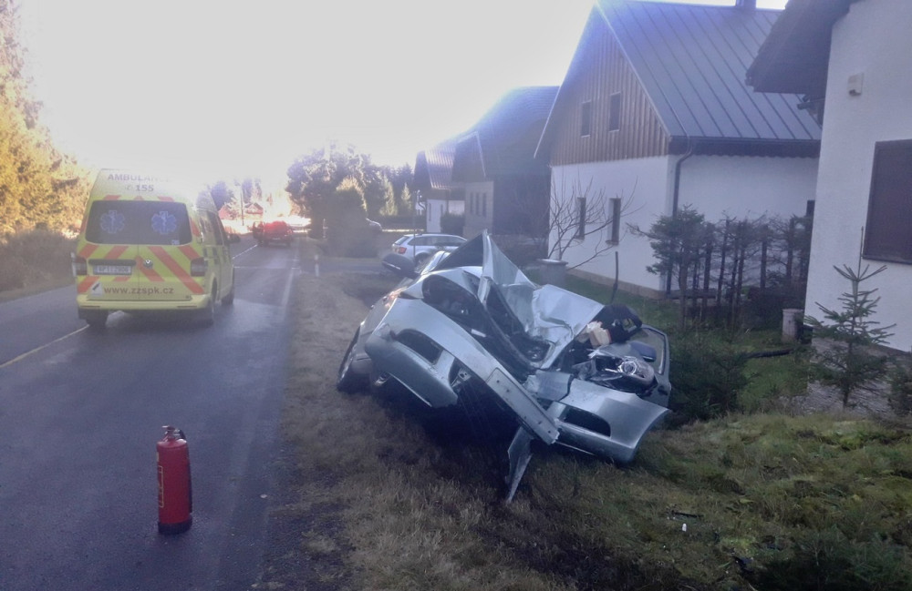 Namrzlá silnice potrápila řidiče, dvě nehody se odehrály jen pár desítek metrů od sebe