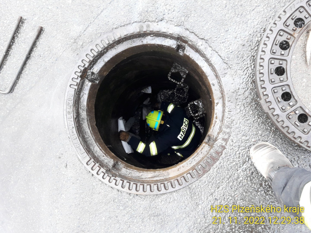 Hasiči bojují s masivním únikem motorového oleje, část se dostala do kanalizace
