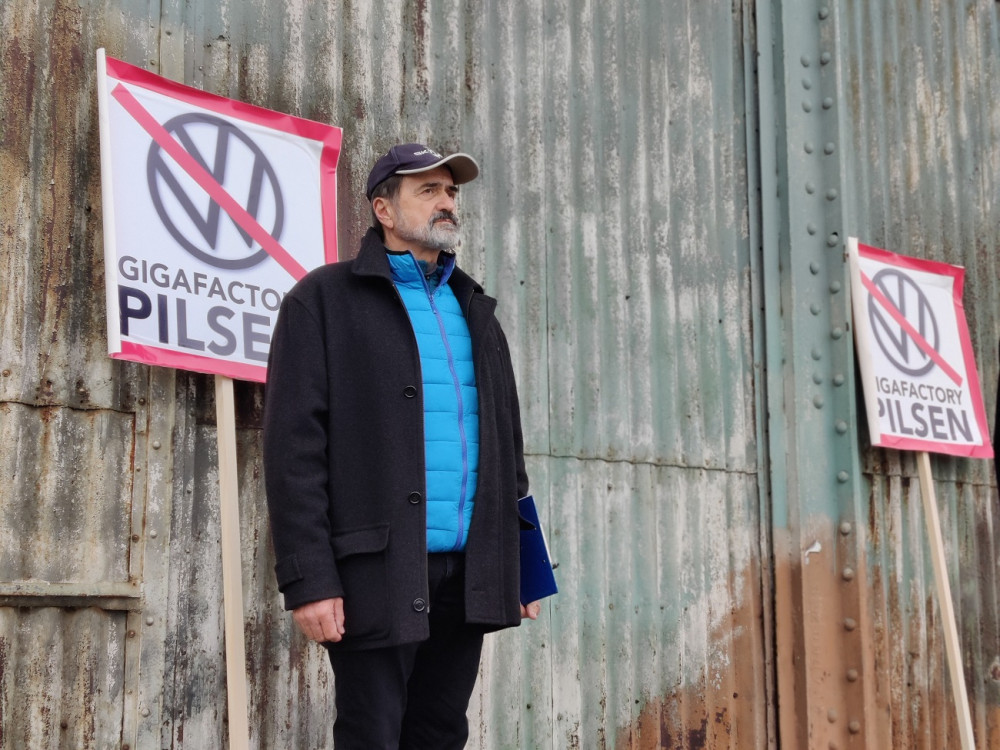 Předseda Českého svazu letectví Václav Vašek na prvním protestu na letišti v Líních