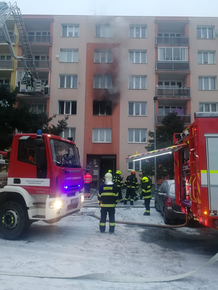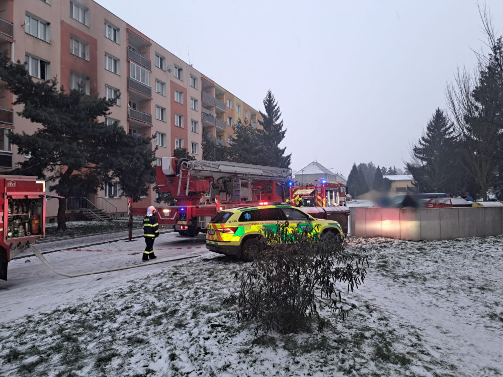 Hasiči bojovali s požárem bytu, čtyři lidé se nadýchali kouře a skončili v nemocnici
