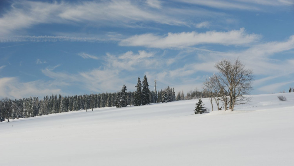 Huťská hora a památník připomínající tragickou štědrovečerní leteckou nehodu na Šumavě