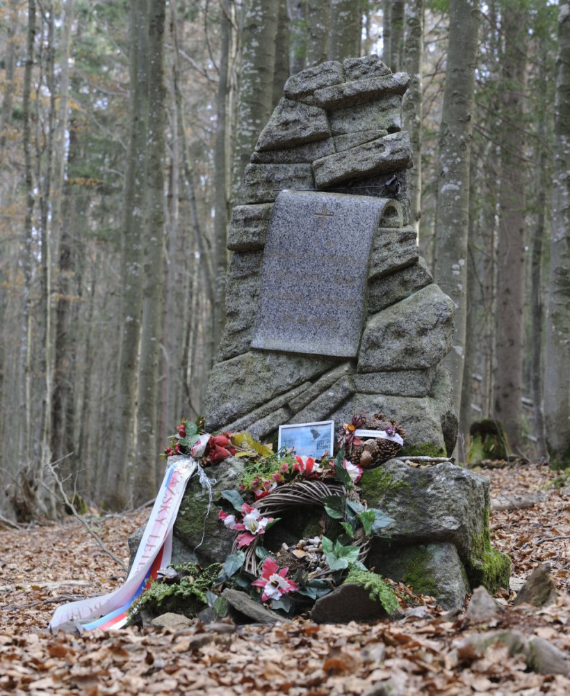 Památník připomínající tragickou štědrovečerní leteckou nehodu na Šumavě