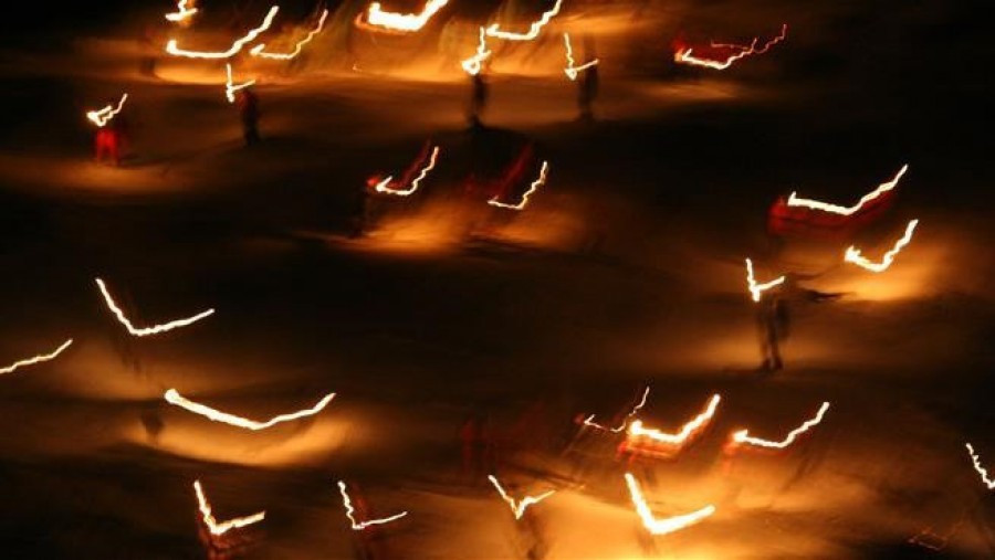 Slavná tradice se musí dodržet i když není sníh. S pochodněmi se z nejprudší české sjezdovky na šumavském Špičáku poběží