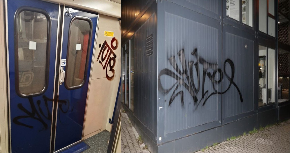 Zběsilý sprejer řádil v okolí vlakového nádraží. Nápisy nastříkal na dveře vagonu, na zdi, na dlažbu i na galerii