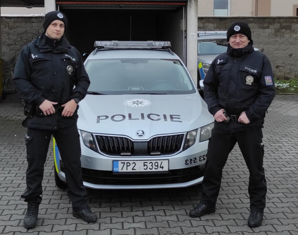 Praporčík David Šesták a praporčík Martin Opáleník z obvodního oddělení Dobřany