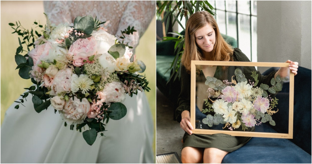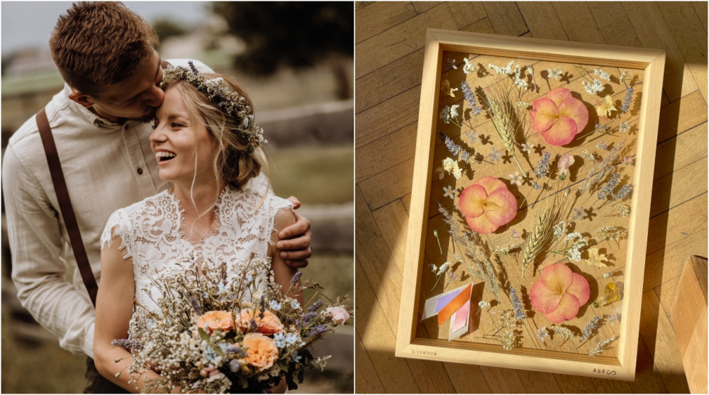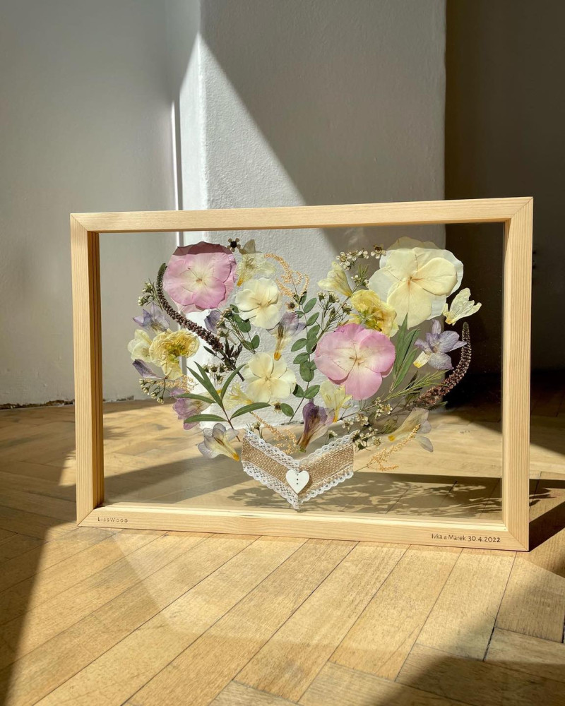 Obraz ze svatební kytice jako originální vzpomínka na svatbu, milovníci přírody z LissWoodu dokážou divy!