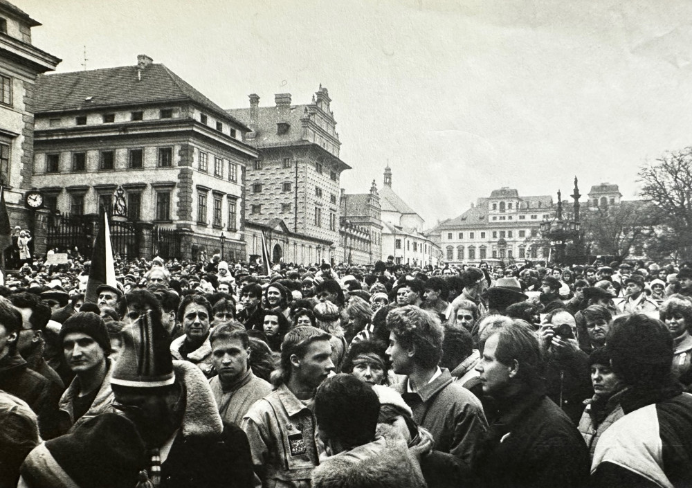 Občané Československa 29. prosince 1989 zaplnili všechna nádvoří Pražského hradu a přilehlého okolí při volbě prezidenta Václava Havla