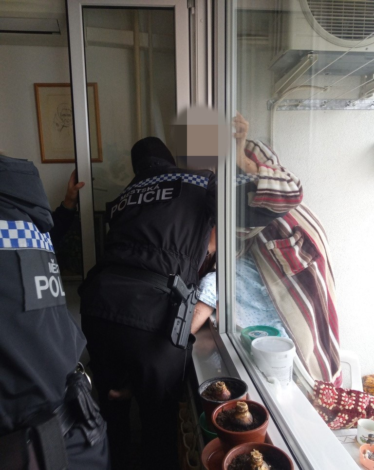 Neslyšící senior nechtěně zavřel na balkoně svoji manželku, promrzlou ženu zachraňovali strážníci