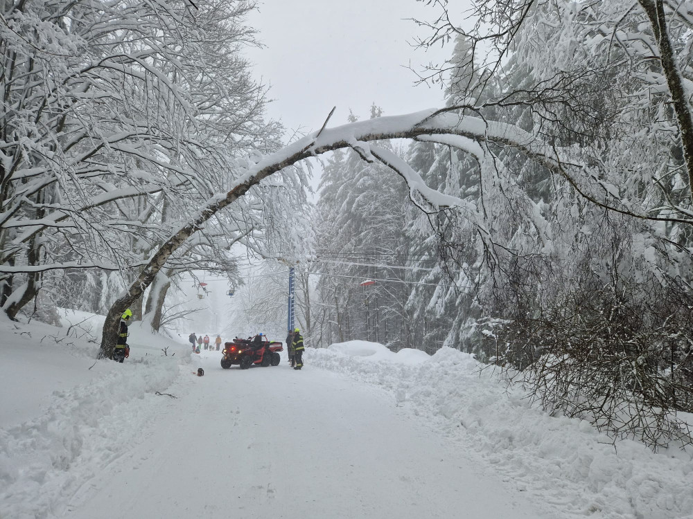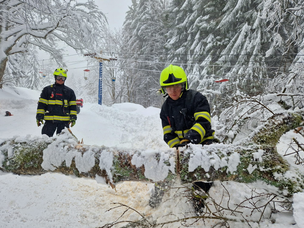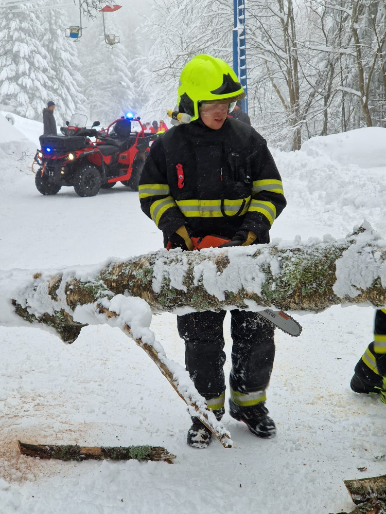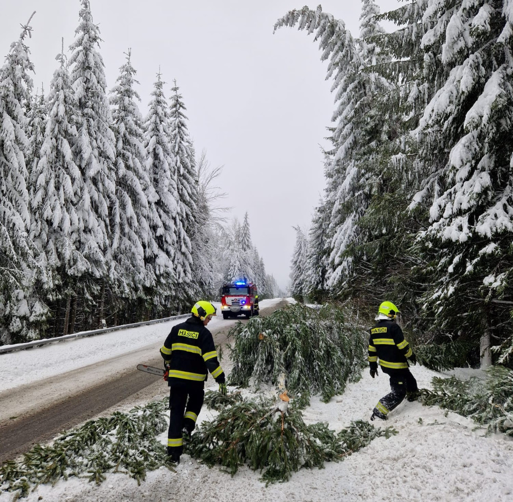 Hasiči odstraňují padlý strom na Hofmankách u šumavského Špičáku