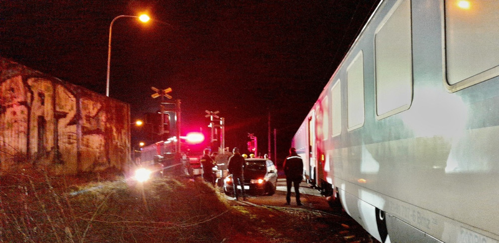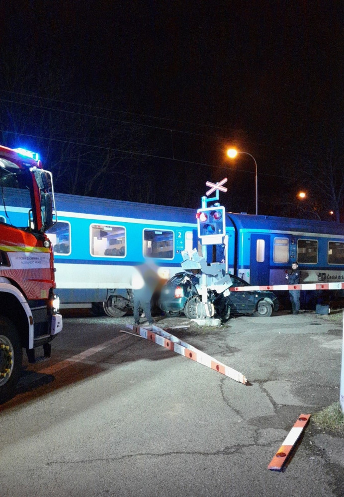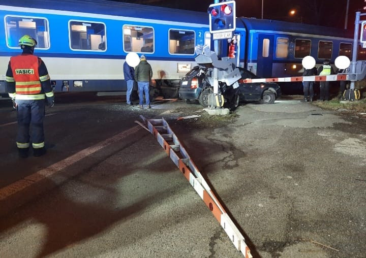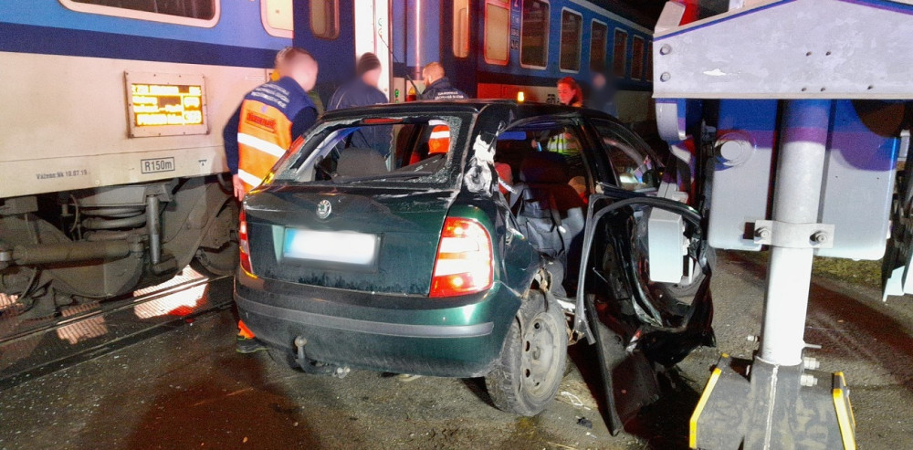 Rychlík smetl na přejezdu uvízlé auto, řidič se stihl na poslední chvíli zachránit
