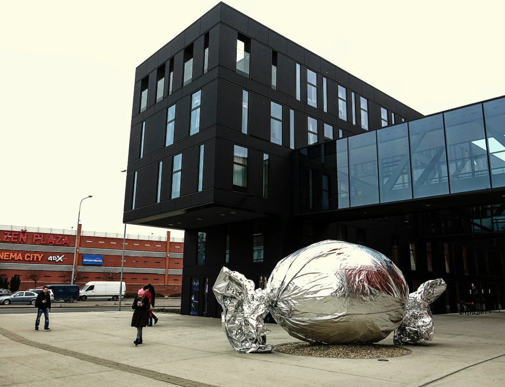 V roce 2018 se obří betonové vejce proměnilo v neméně velký bonbon, foto: Fakulta designu a umění Ladislava Sutnara