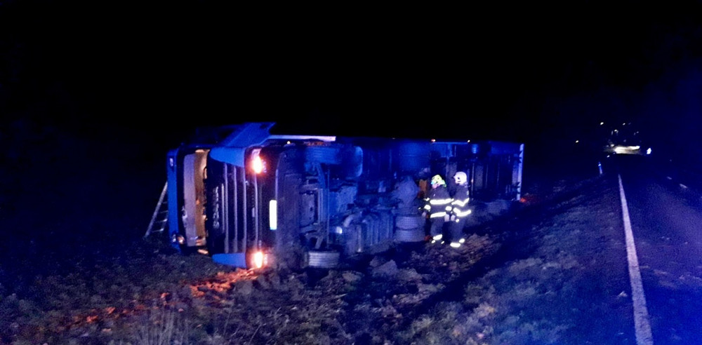 Silně opilý řidič převrátil na rovném úseku kamion, nadýchal přes dvě a půl promile