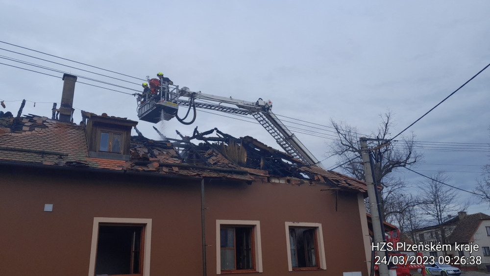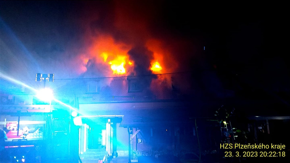 Hasiči bojují s požárem v luxusním penzionu s vyhlášenou restaurací. Škoda je předběžně vyčíslena na 35 milionů