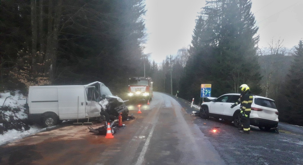 Řidič mercedesu nezvládl řízení a čelně se střetl s protijedoucí dodávkou, škoda přesáhla půl milionu