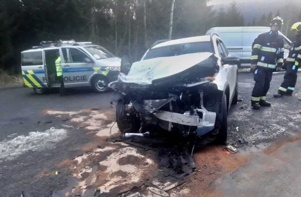 Řidič mercedesu nezvládl řízení a čelně se srazil s protijedoucím vozem, škoda přesáhla půl milionu