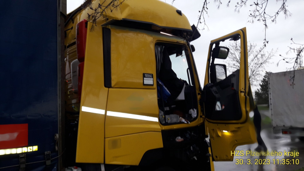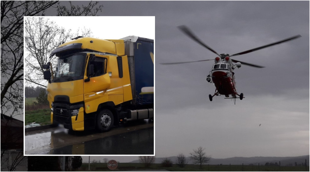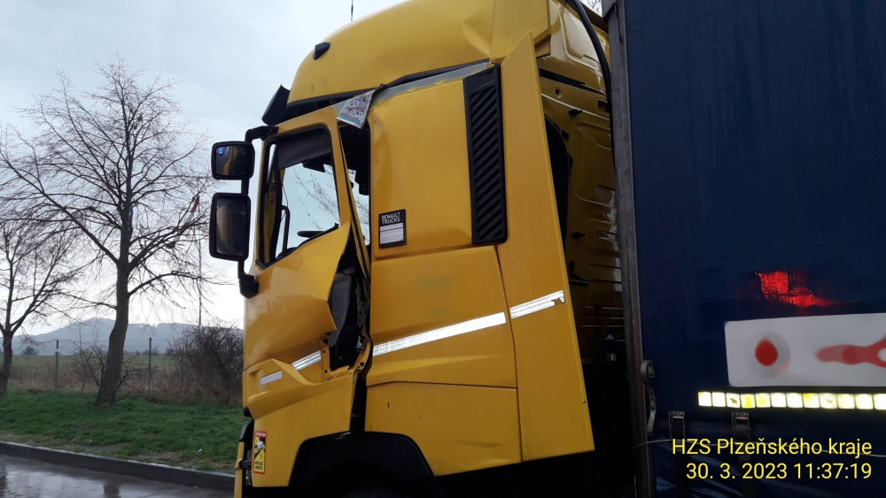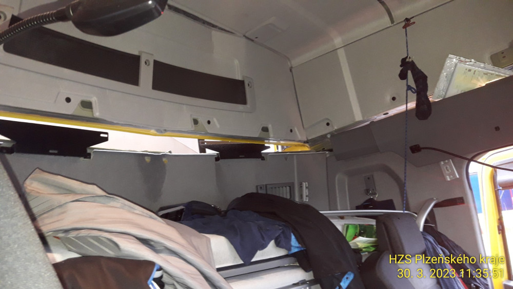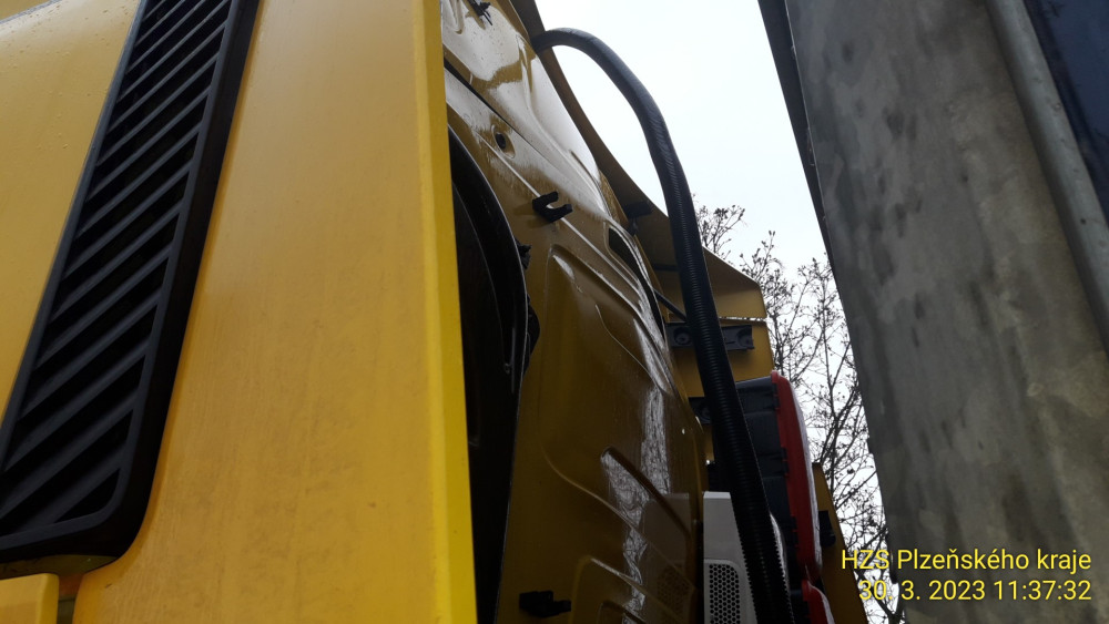 Exploze v kabině kamionu na čerpací stanici u D5. Řidiči vybuchla do obličeje lahev propan-butanu