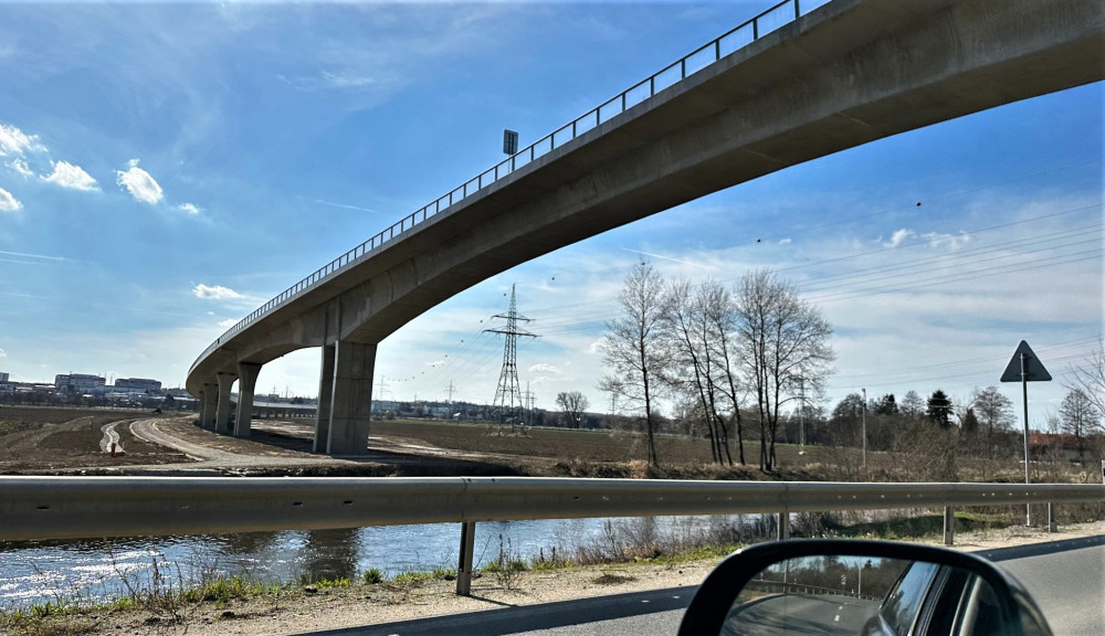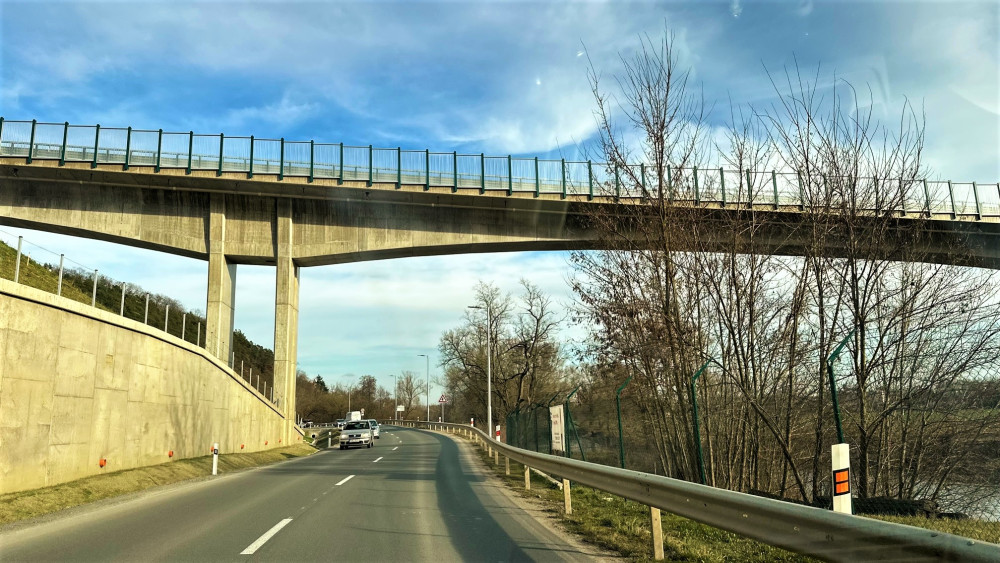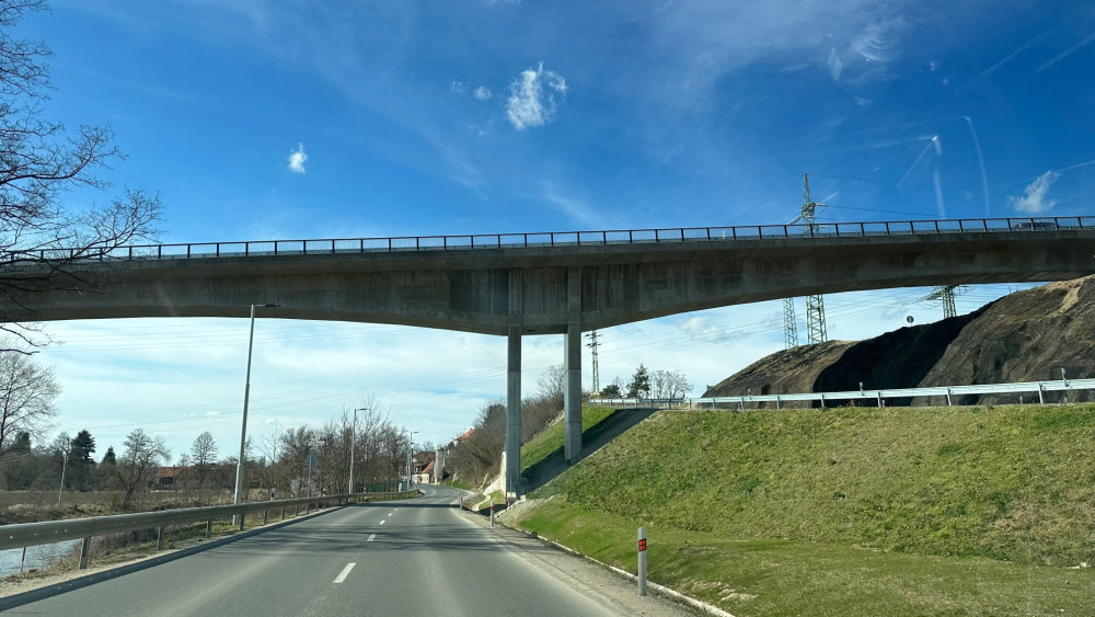 Na úzké estakádě nového okruhu Plzně je zákaz předjíždění a místy omezená rychlost, jde o nebezpečný úsek