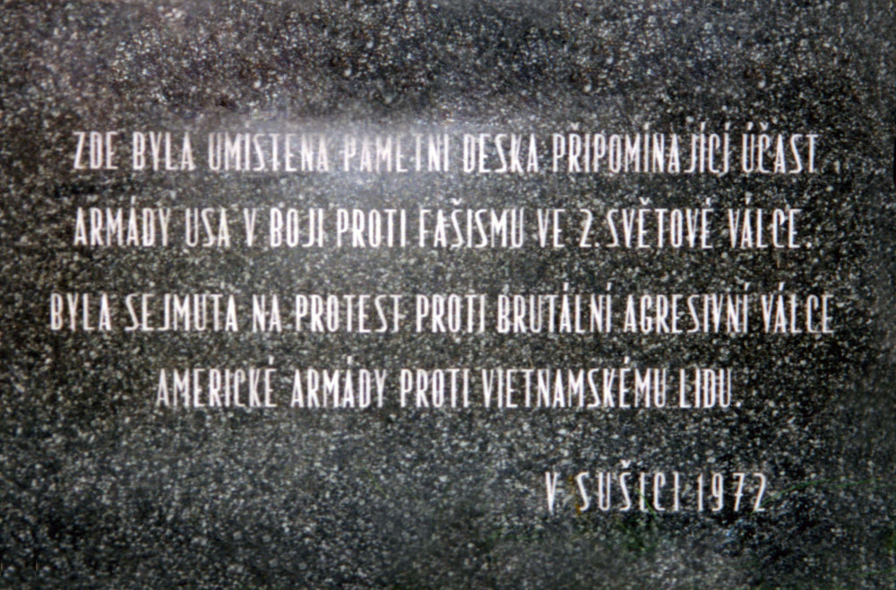 Naprosto kuriózní a tragikomický osud měla tato pamětní deska připomínající osvobození Sušice americkou armádou