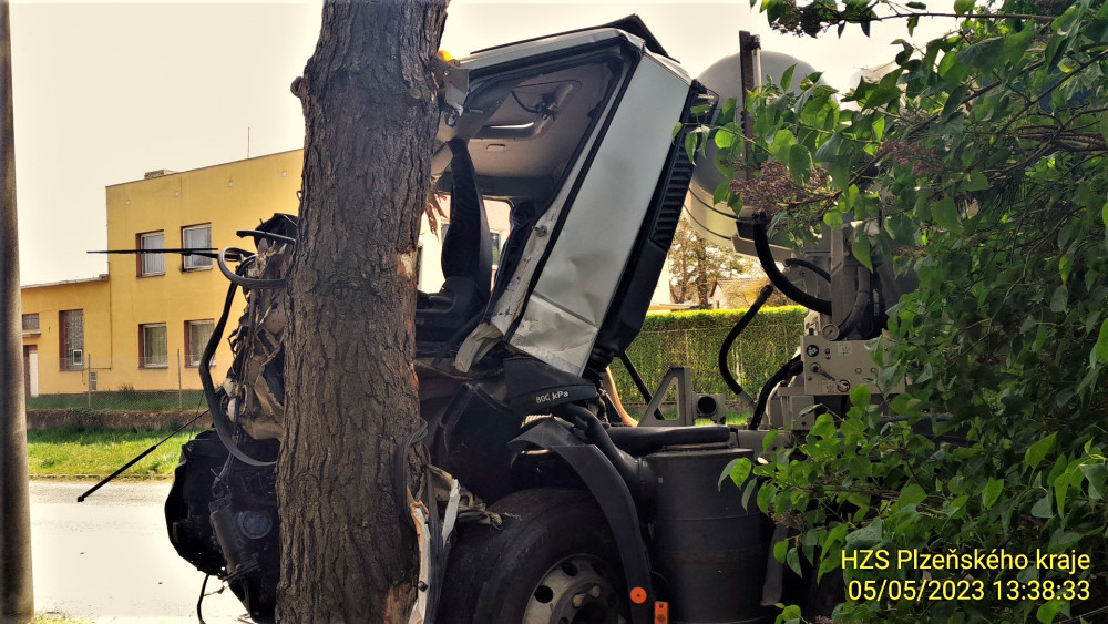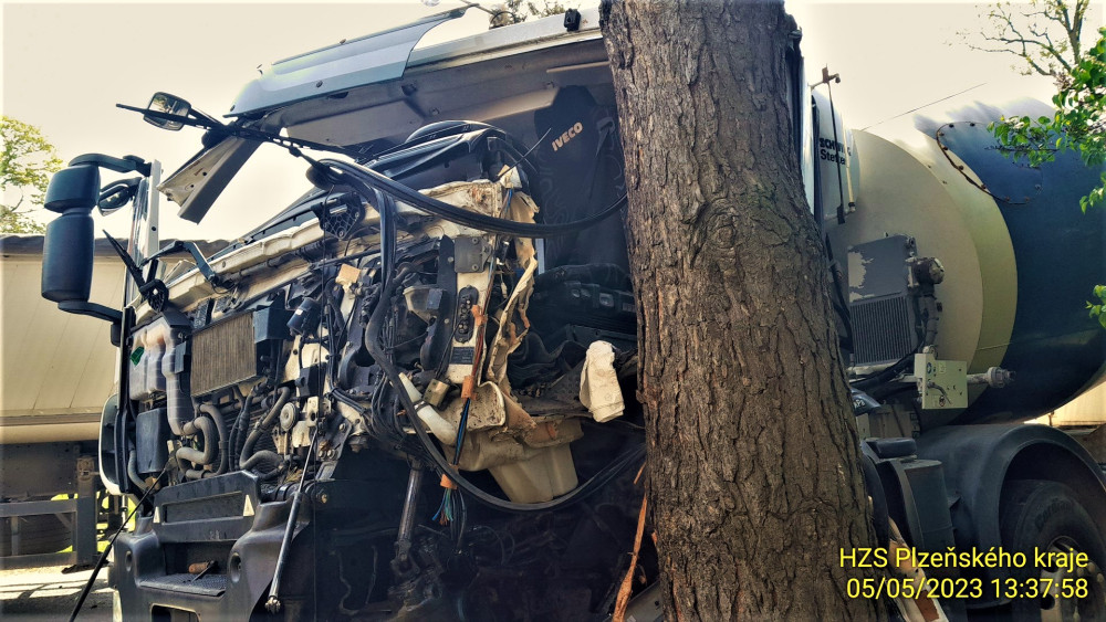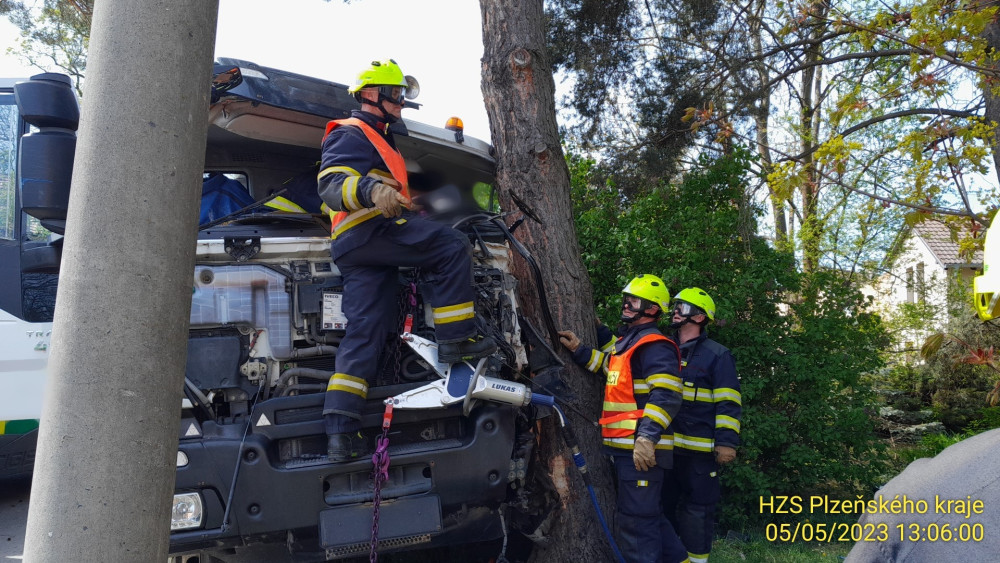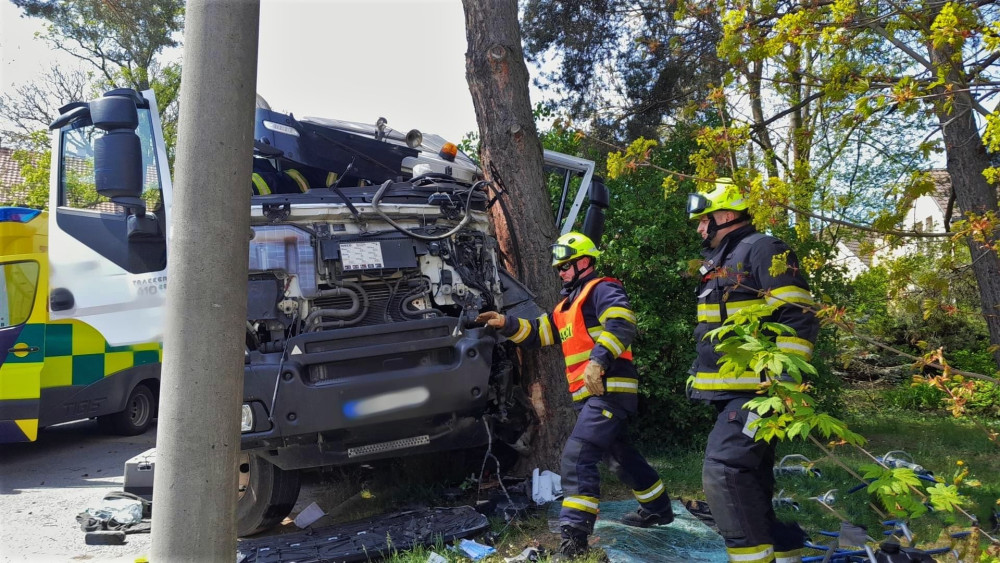 Ze zdemolované kabiny náklaďáku hasiči složitě vyprošťovali těžce zraněného řidiče