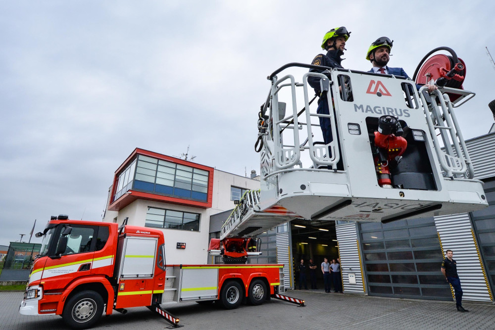 Nový automobilový žebřík si vyzkoušel i primátor Plzně Roman Zarzycký