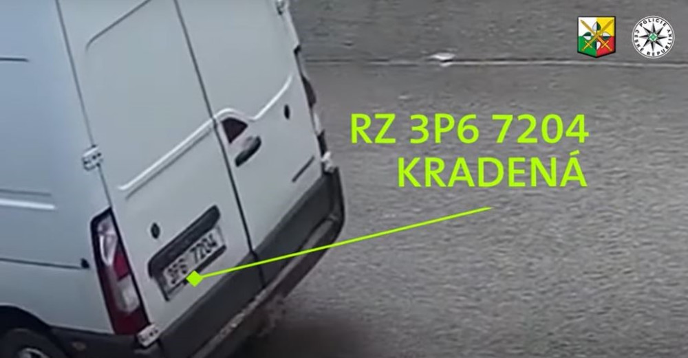 Kamera zachytila při akci dva pachatele, na místo činu přijeli v dodávce s kradenou značkou