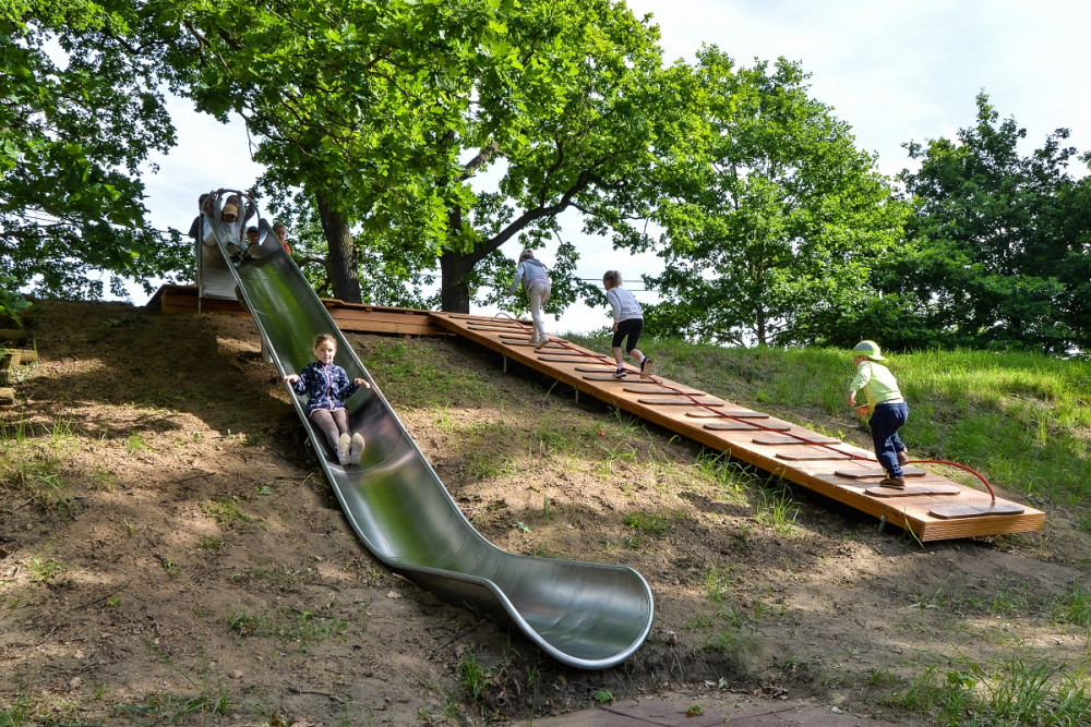 Malé návštěvníky potěší u Boleváku nové dětské hřiště, dominují mu přírodní herní prvky