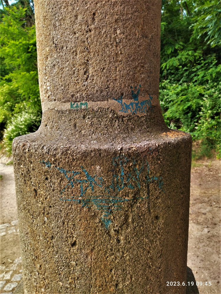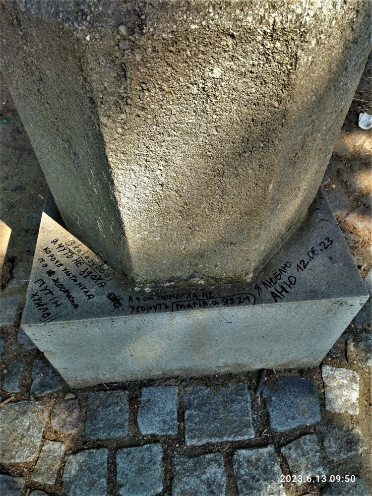 Sochu populárního andělíčka popsal neznámý vandal nápisy v azbuce