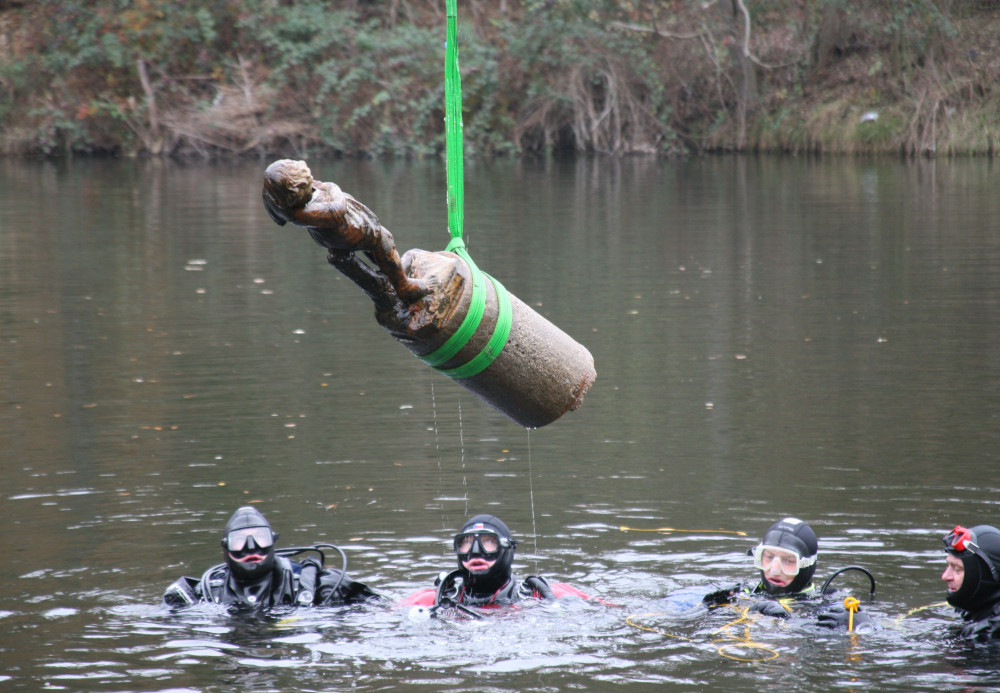 Originál sochy bezprostředně po vylovení z Košuteckého jezírka v roce 2009