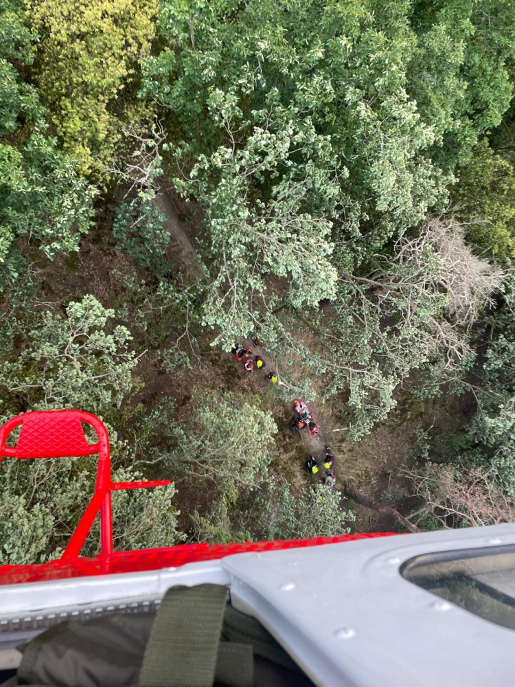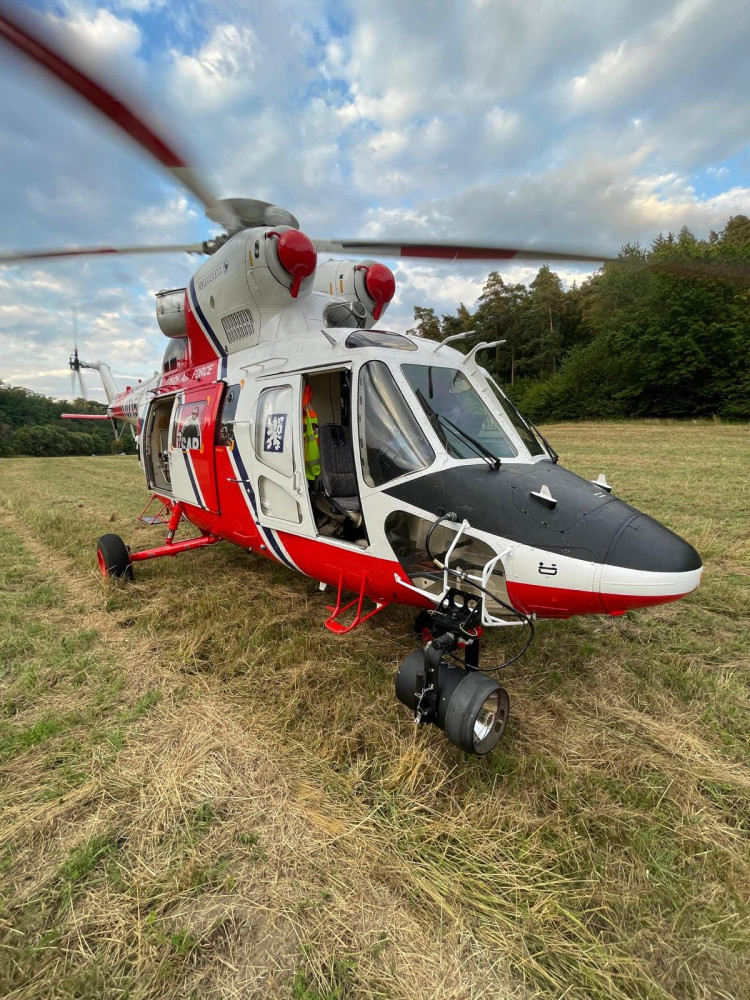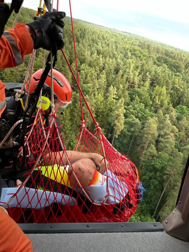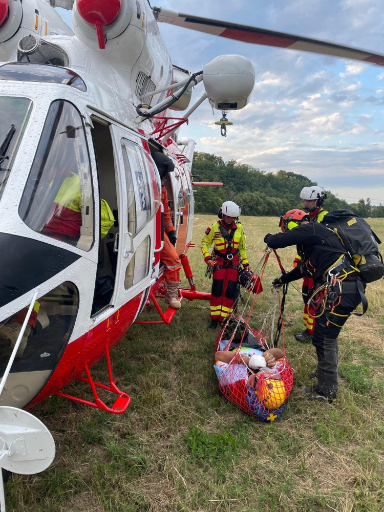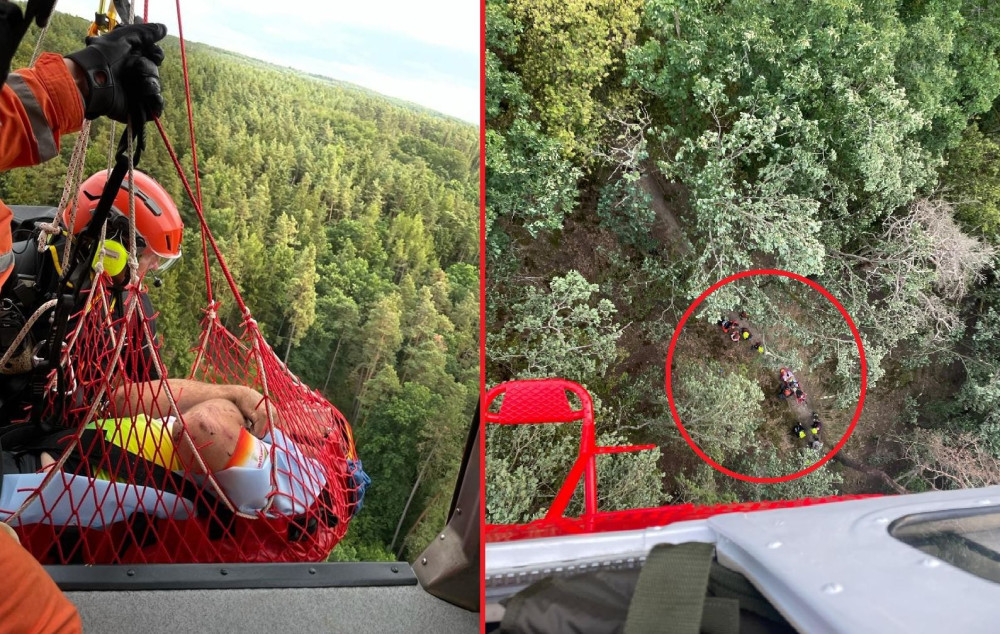 Letečtí záchranáři slaňovali k vážně zraněnému muži, který se zřítil ze srázu v nepřístupném terénu