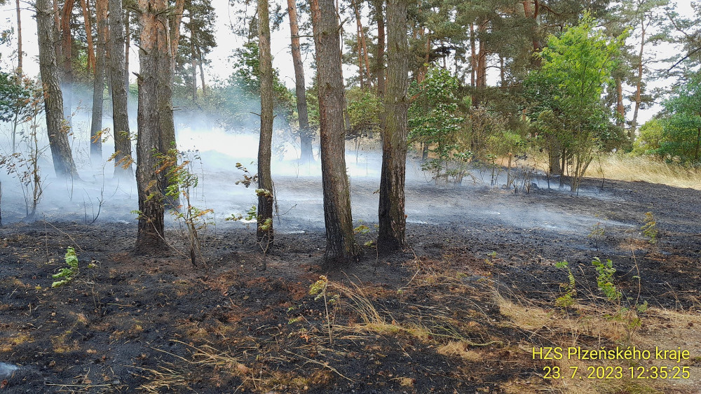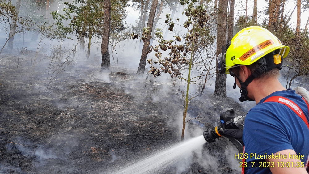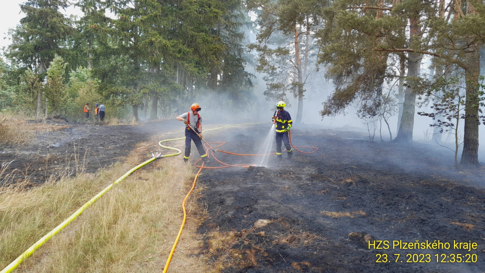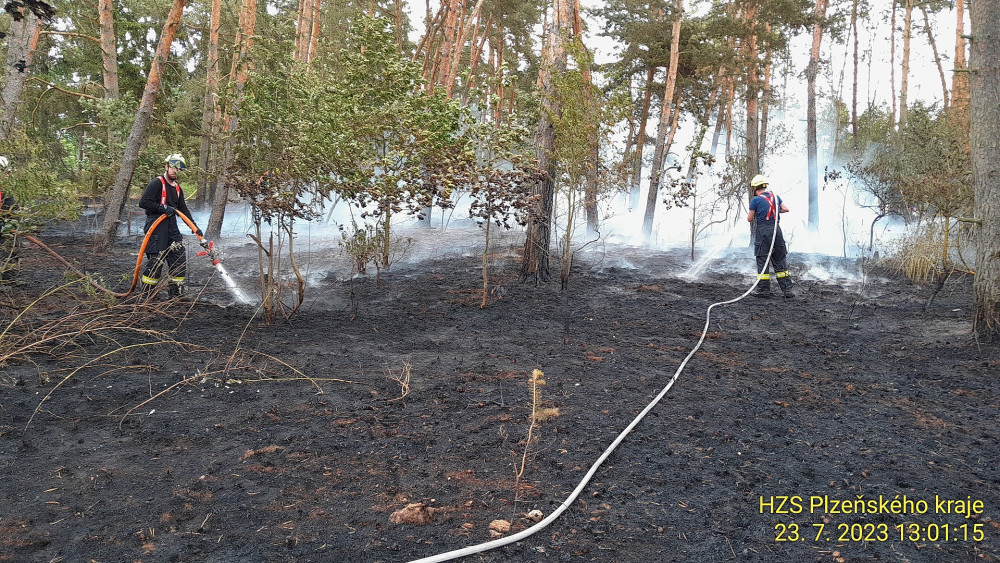Hasiči bojují v Plzeňském kraji současně na dvou místech s rozsáhlými požáry lesa a pole