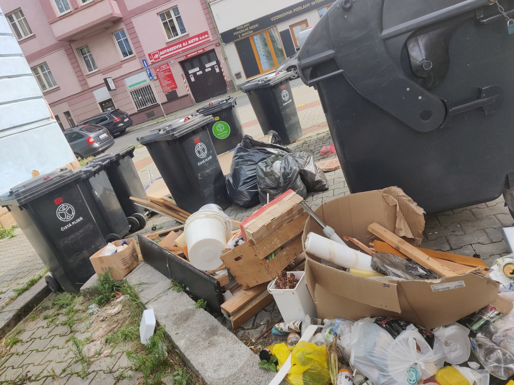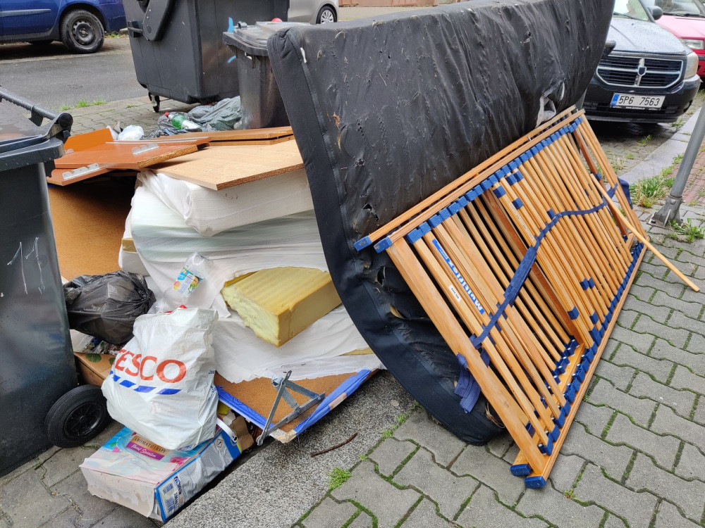 FOTO: Během večera natahali lidé k popelnicím haldy nepořádku i pět matrací, strašily tam několik dní