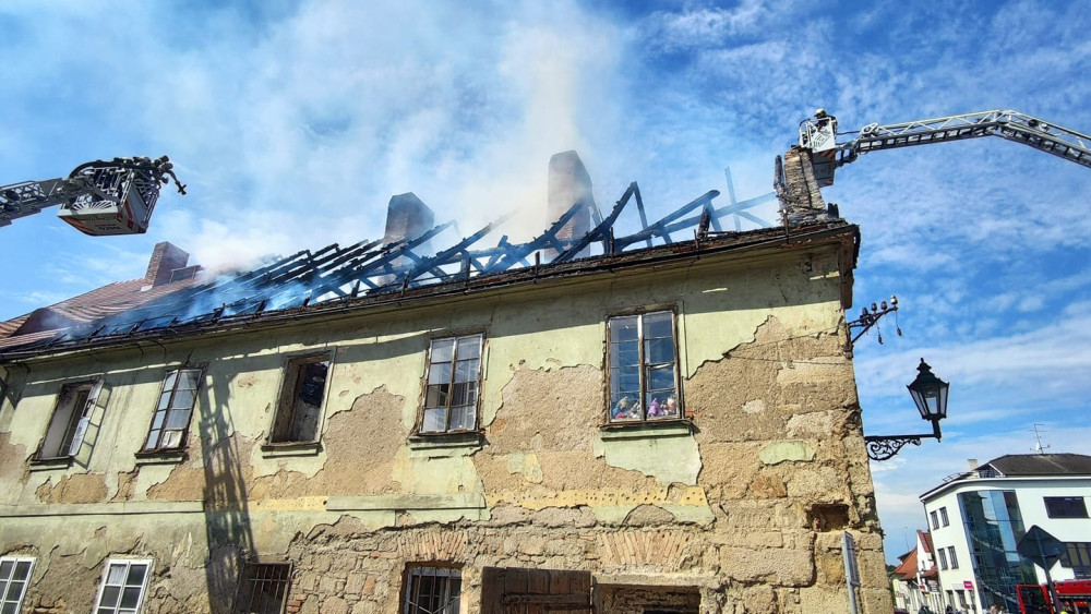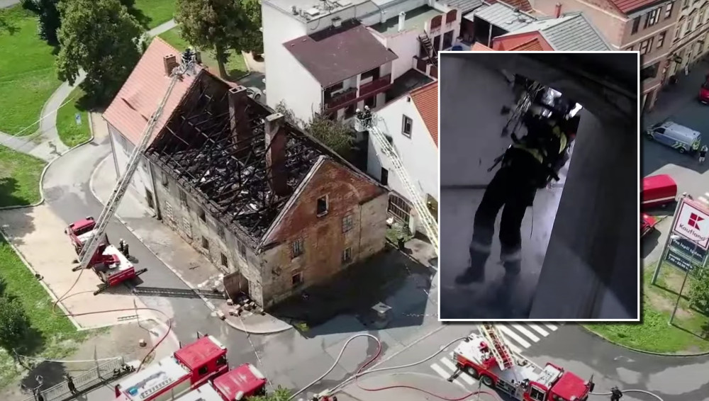 VIDEO: Stropem se propadli dva hasiči při požáru historického domu, oheň napáchal škody za miliony