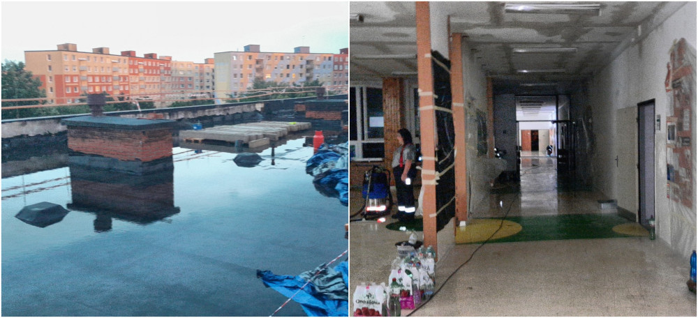 Bouřka vytopila základní školu, kde probíhala rekonstrukce. Voda se prohnala třemi patry i tělocvičnou