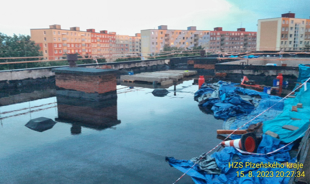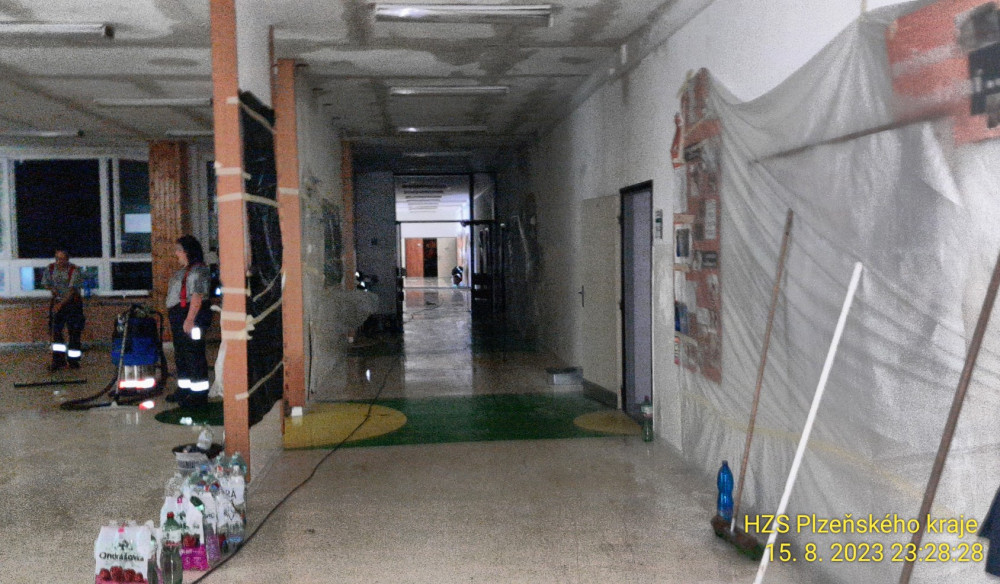 Vydatné deště vytopily objekt základní školy, kde probíhala rekonstrukce. Voda se prohnala třemi patry i tělocvičnou