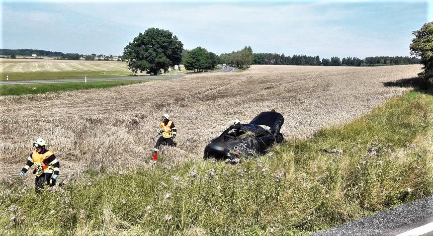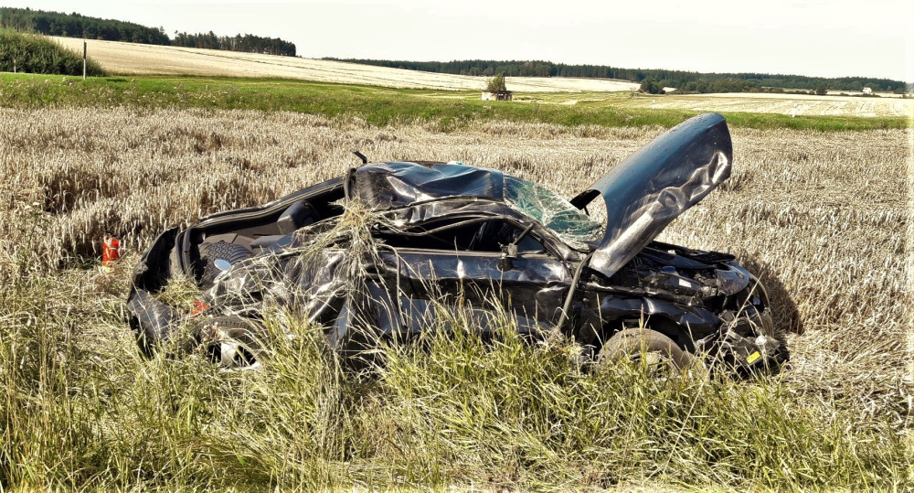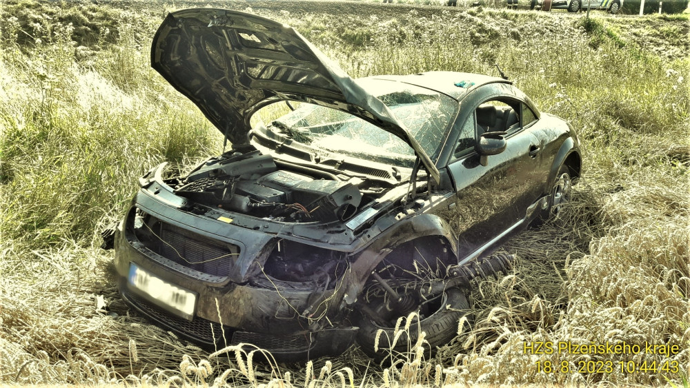S vozem Audi TT vletěl do pole devatenáctiletý řidič. Auto se několikrát převrátilo přes střechu