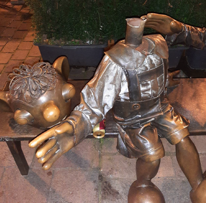 Vandal urval hlavu bronzové soše Hurvínka, foto: Policie ČR