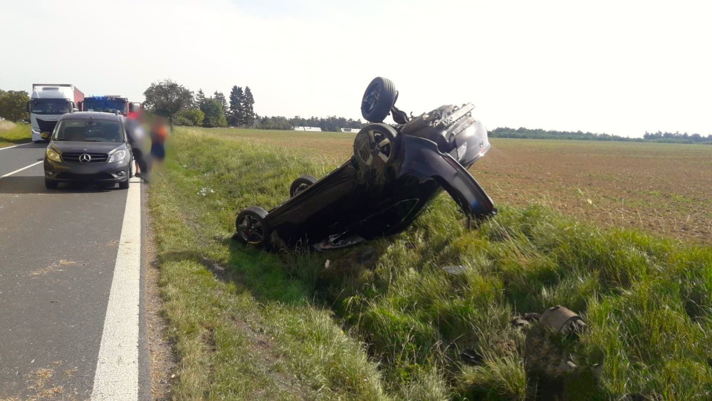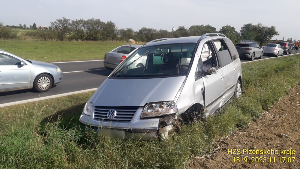 Neznámý řidič kradeného vozu způsobil střet tří osobáků. Po hrozivé nehodě se mu podařilo uprchnout přes pole