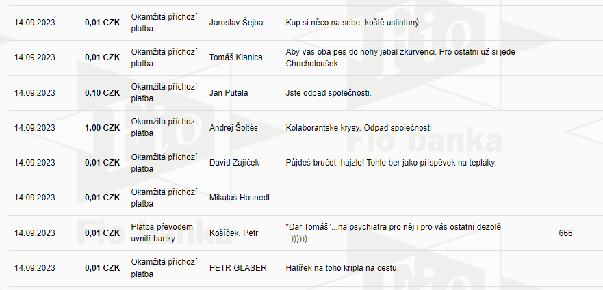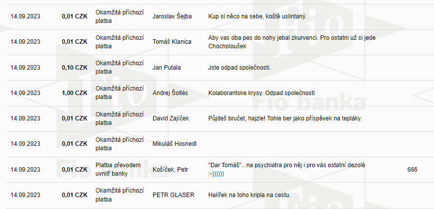 Desetník jako příspěvek na tepláky či cestu do Ruska, transparetní účet dezinfo scény se plní vzkazy pro uprchlého Čermáka