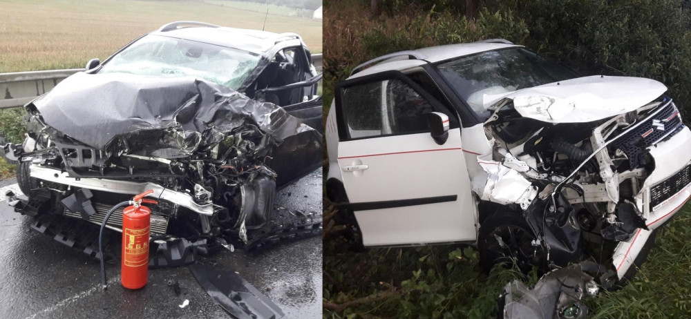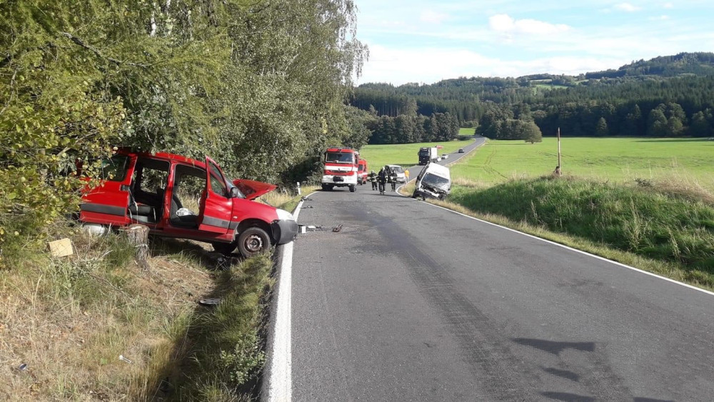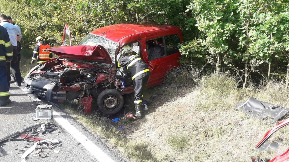 Po smyku vjel přívěs kamionu do protisměru, kde smetl dva osobáky. Záchranáři zasahovali u dvou těžkých nehod