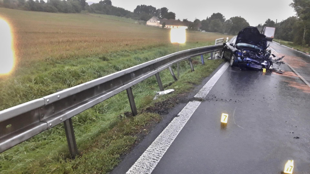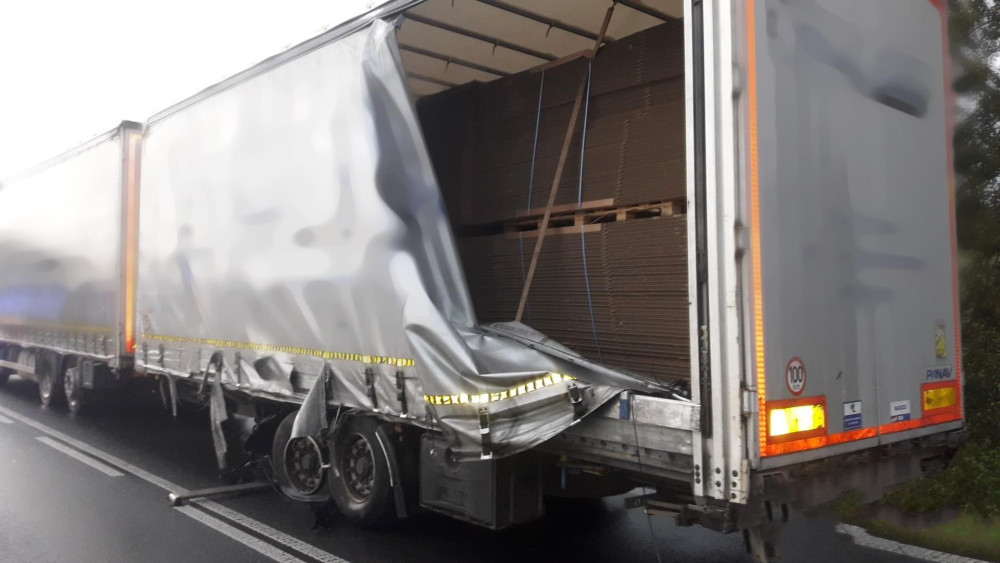 Po smyku vjel přívěs kamionu do protisměru, kde smetl dva osobáky
