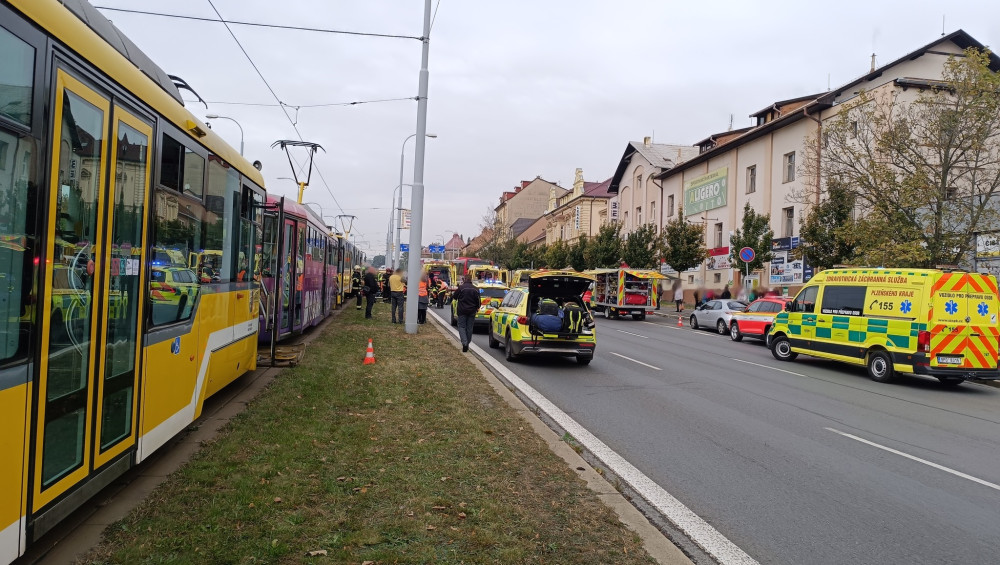 Při srážce dvou tramvají v centru Plzně se zranilo téměř 30 lidí včetně pěti dětí