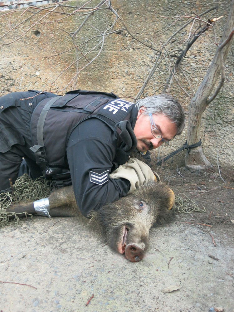 Takto vypadá odchyt divokého prasete v Plzni